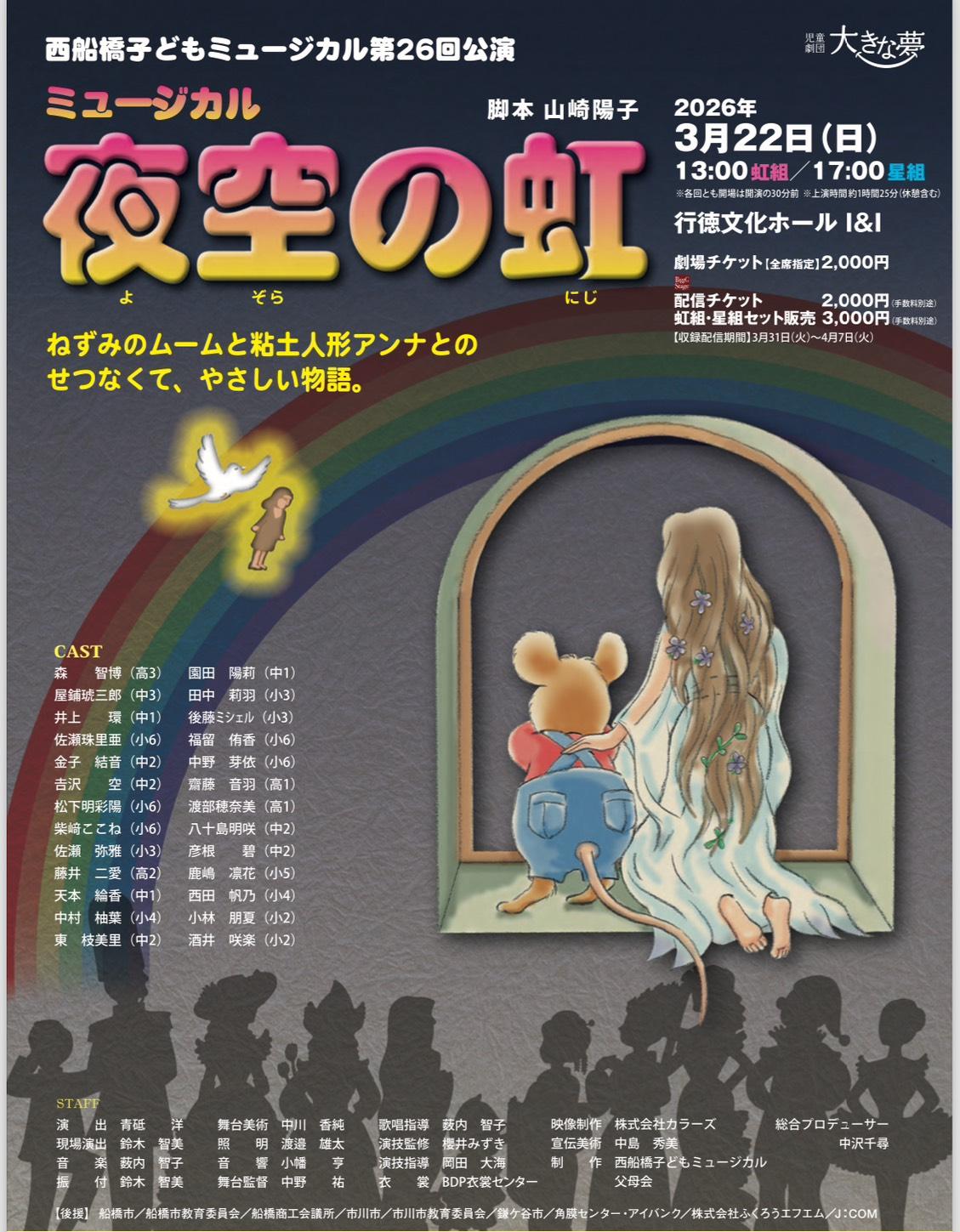 西船橋子どもミュージカルは、子どものためのミュージカル劇団です。対象は小学生から高校生。